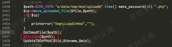 继续浏览代码,在下面发现`@include($path)`,直接包含了这个上传的文件,这时如果在上传文件中添加可以创建文件的代码就可以绕过找不到文件名这个限制了。