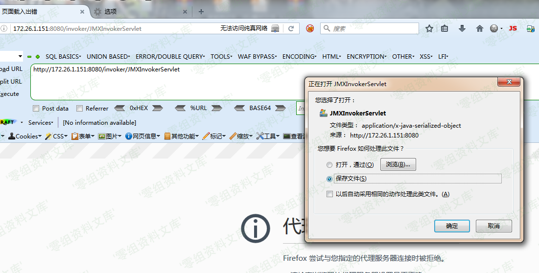 输入`http://172.26.1.151:8080/invoker/EJBInvokerServle` 返回如图(图片是CVE-2015-7501的图片。差不多就是这个意思。凑活看哈~),说明接口开发,存在反序列化漏洞