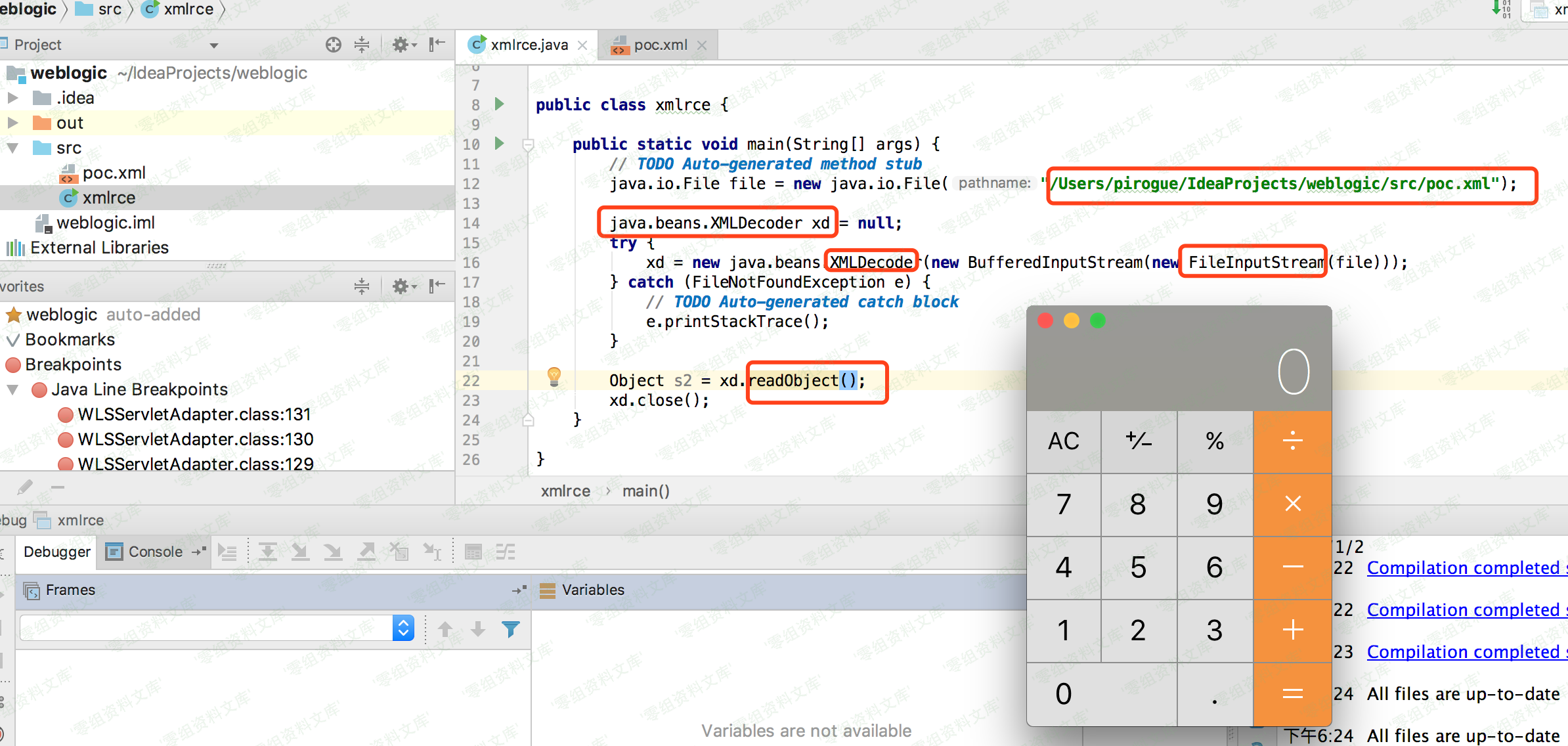 java.io.File file = new java.io.File(“/Users/pirogue/IdeaProjects/weblogic/src/poc.xml”);