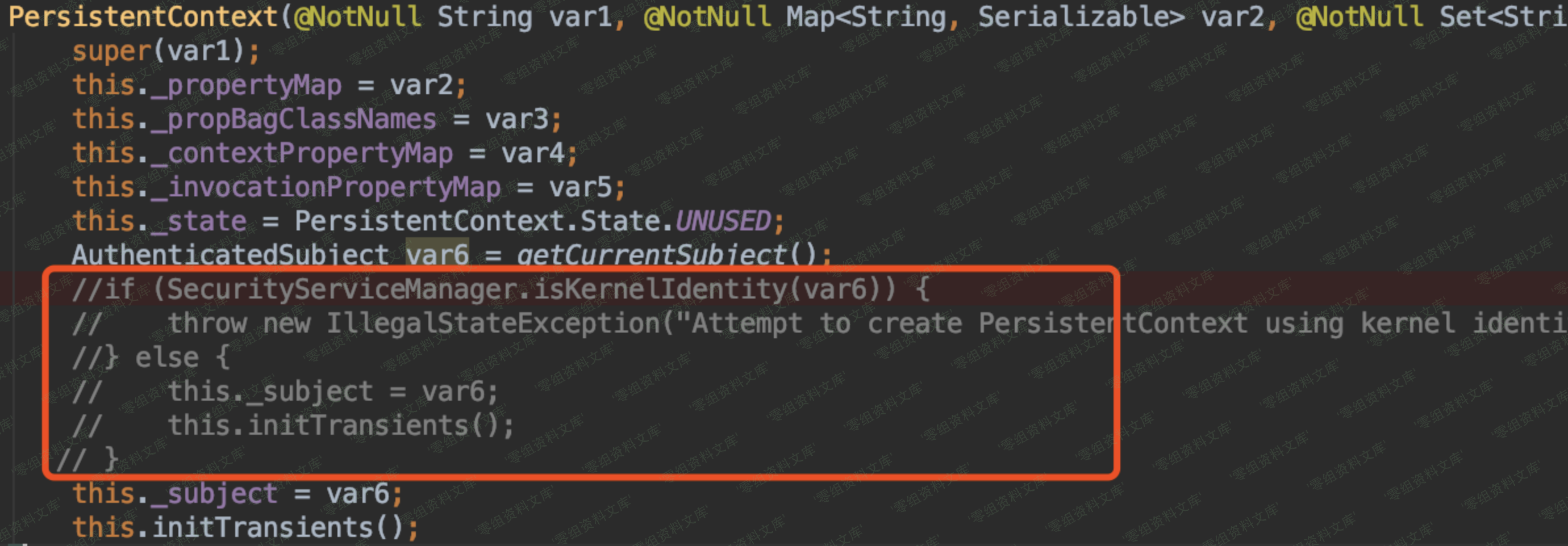 因为需要用到 PersinstenContext 这个类,因此序列化的时候肯定要将其实例化,但是在下图代码位置有个if检查。