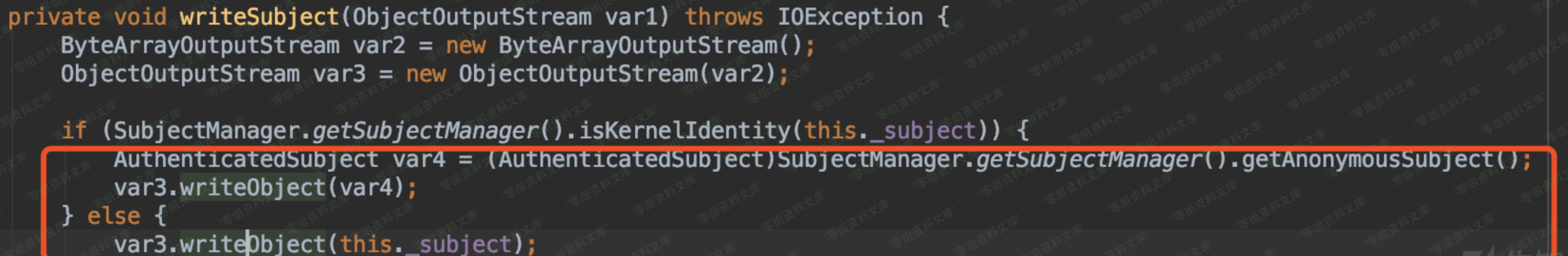 原先在 writeSubject 中正常写入的对象如下图所示。