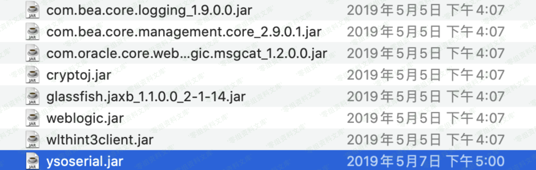 网上有两篇文章都说了这么个构造思路,但是我阅读学习的时候,死在了导入jar这个难题下,因此在漏洞利用的开头,我列出几个jar文件,测试环境 weblogic 10.3.6 ,可能weblogic 12 jar名字有所不同。