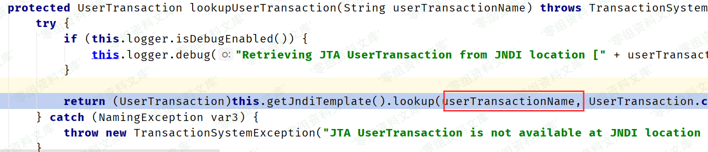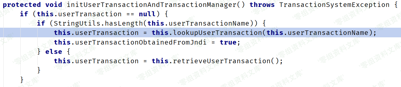 如果userTransaction等于空有userTransactionName属性则进入lookupUserTransaction(),跟进