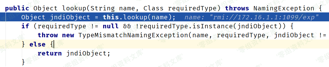lookup加载我们的RMI服务,可以注入恶意ip的rmi服务,触发实例化恶意类构造方法调用
