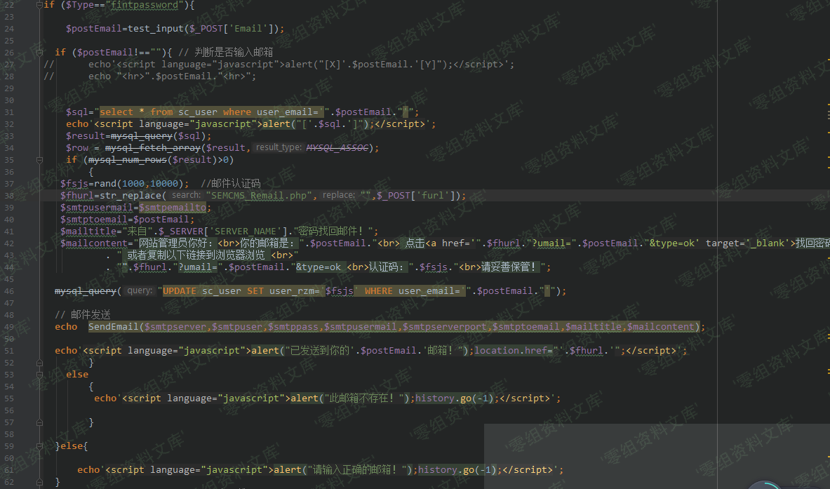 再看一下 web_email.php 中 type=findpassword 时的代码: