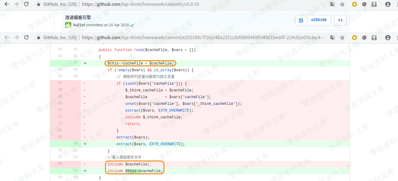 我们可以查阅其 commit 记录,发现其改进了模板引擎,其中存在危险函数 extract ,有可能引发变量覆盖漏洞。接下来,我们直接跟进代码一探究竟。
