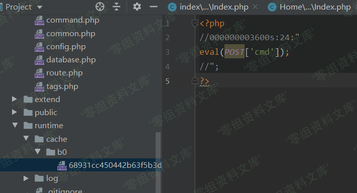 最终在 runtime/cache/b0/68931cc450442b63f5b3d276ea4297.php文件生成shell: