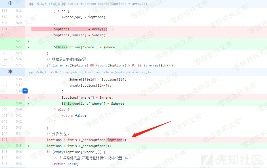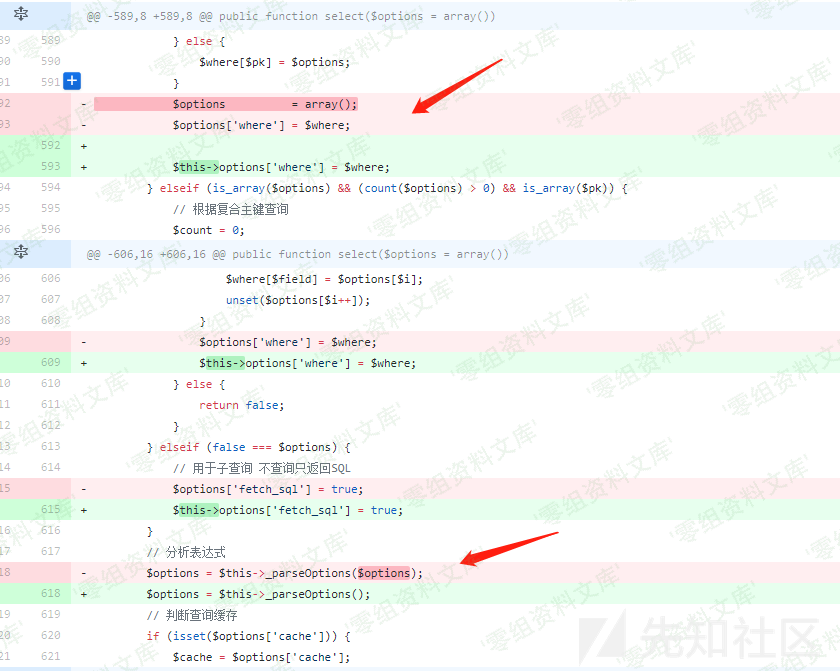<= 3.2.3 ### 三、复现过程 **漏洞分析** 通过github上的commit 对比其实可以粗略知道,此次更新主要是在ThinkPHP/Library/Think/Model.class.php文件中,其中对于delete,find,select三个函数进行了修改。 delete函数  select函数  find函数  对比三个方法修改的地方都有一个共同点: 把外部传进来的$options,修改为$this->options,同时不再使用$this->_parseOptions对于$options进行表达式分析。