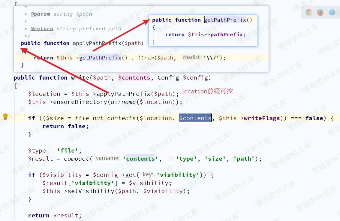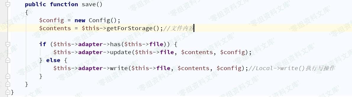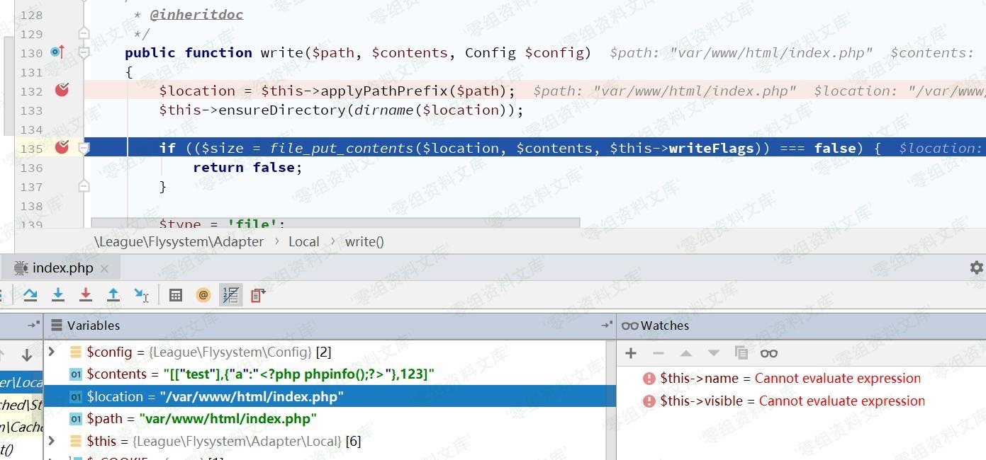 接下来需找到具有write()方法的类,vendor/league/flysystem/src/Adapter/Local.php中Local类符合条件