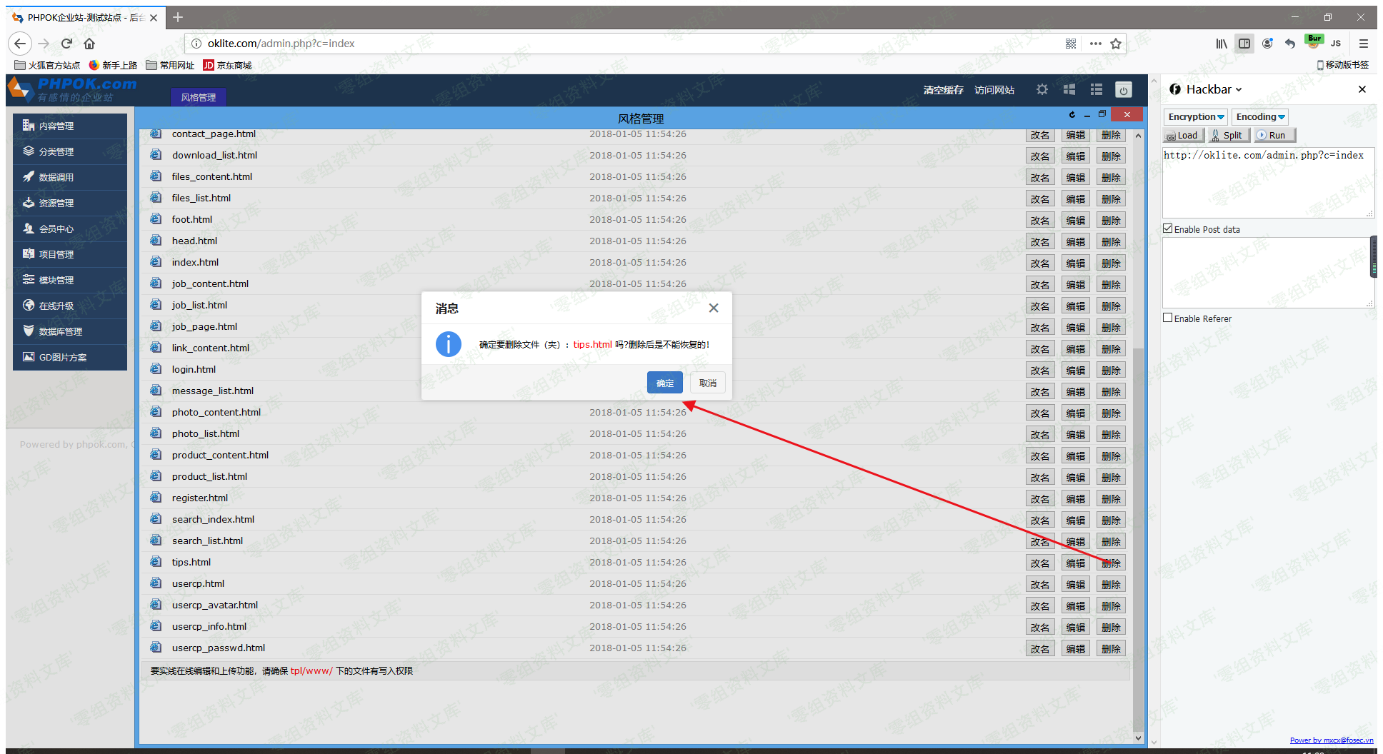 后台删除文件时抓包修改title参数可以直接删除网站任意文件