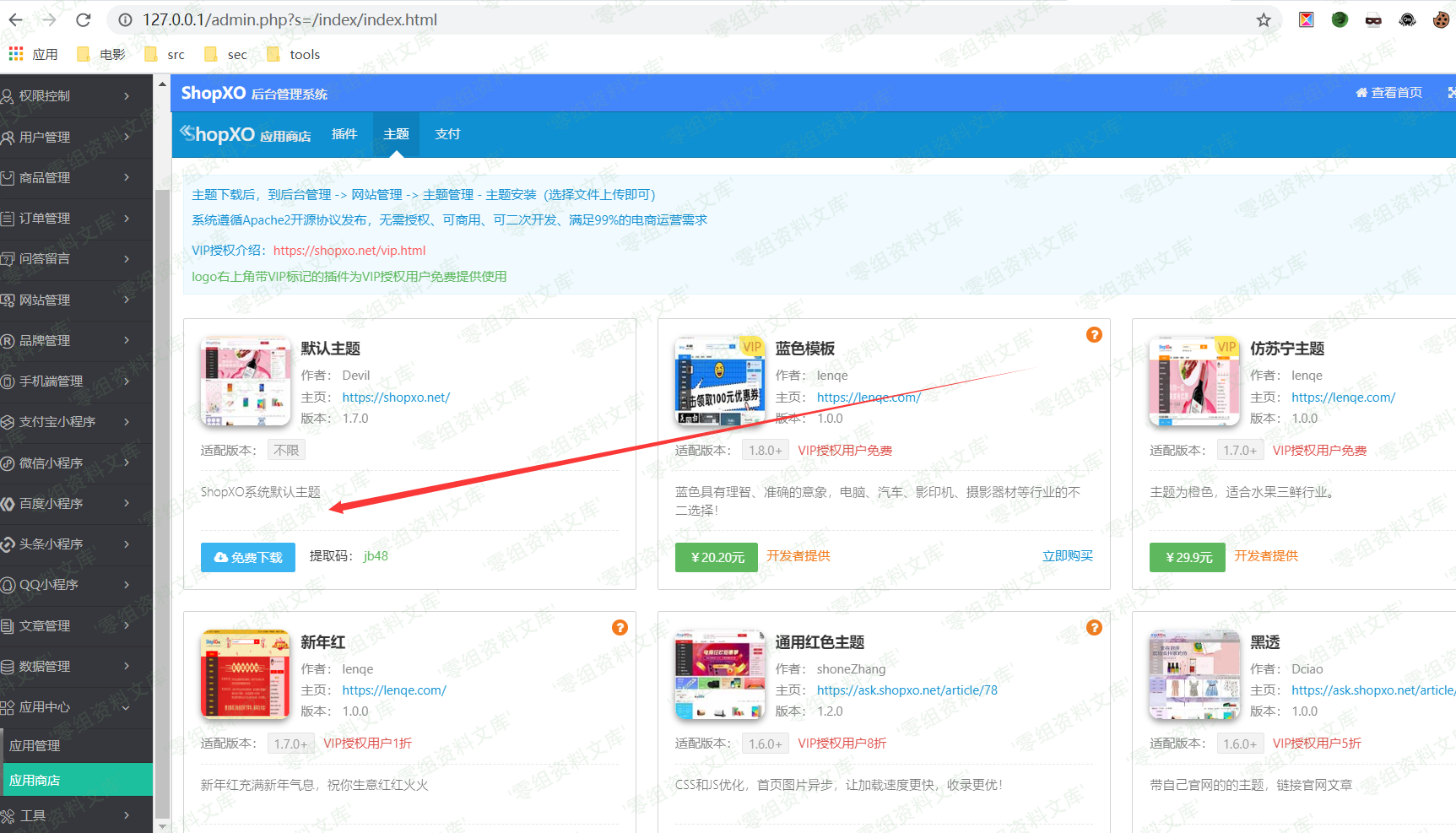 然后把下载下来的压缩包解压出来 把shell放入static目录
