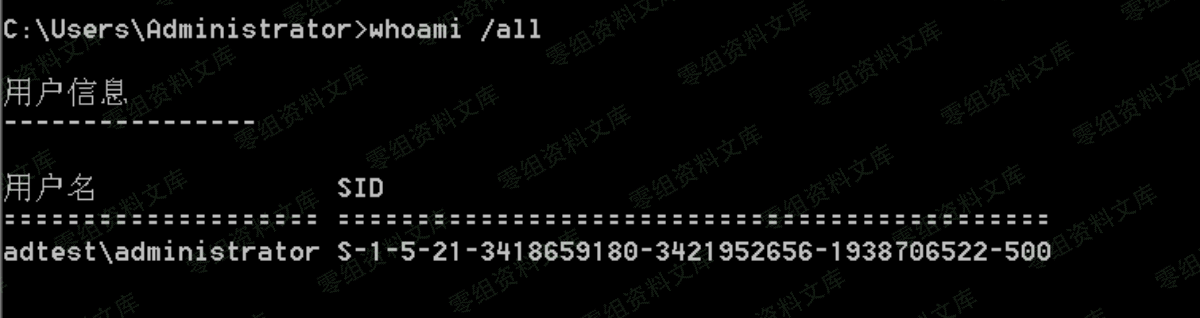 在导出 krbtgt 的 hash 的时候已经包含了域 SID,也可以用以下命令来查看域 SID