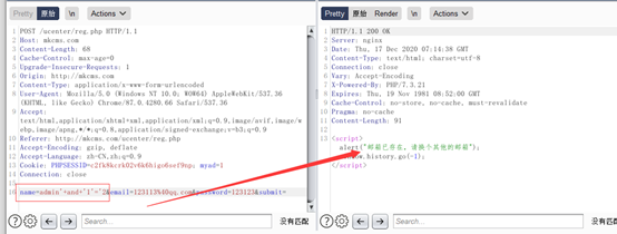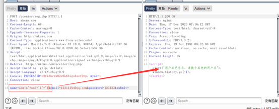 来到前台漏洞点,`http://mkcms.com/ucenter/reg.php`(`mkcms.com为本地静态`!)