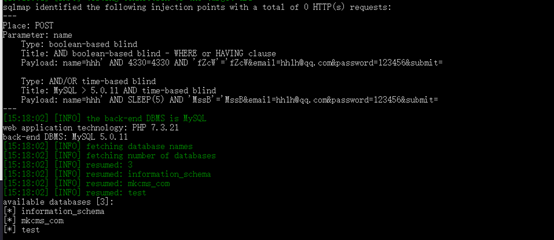 可以看到,数据库执行了`sleep()`函数。