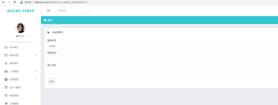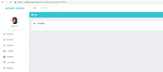 定位到漏洞点,url:`http://mkcms.com/admin/cms_admin_edit.php?id=1`(`mkcms.com为本地静态`!)