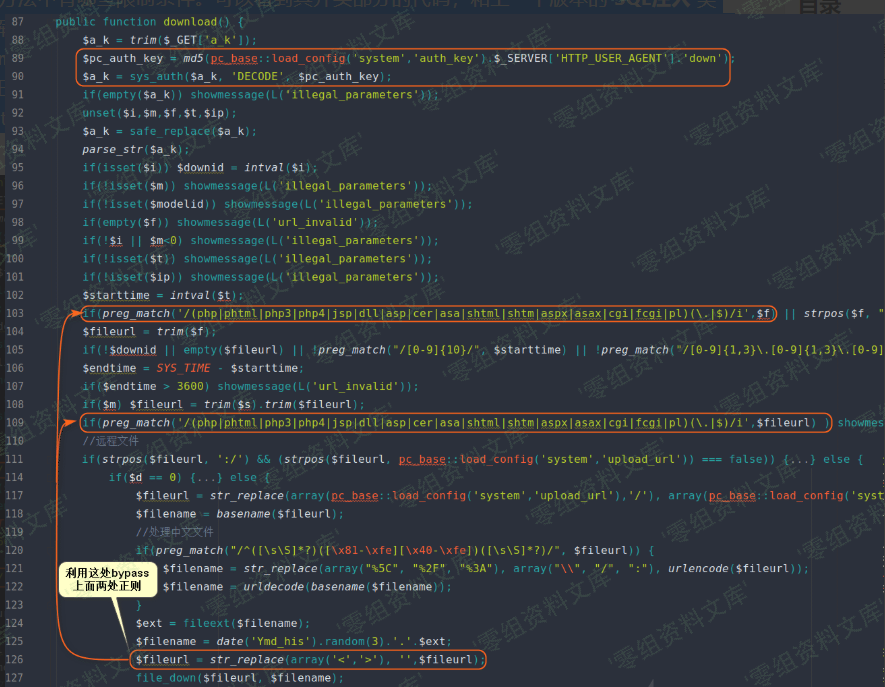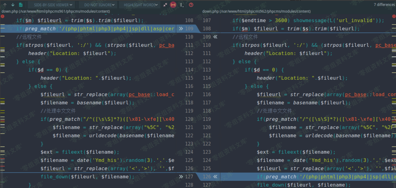 漏洞攻击链的前2步是一样的,这里不再赘述。(下图对应文件位置:phpcms/modules/content/down.php)