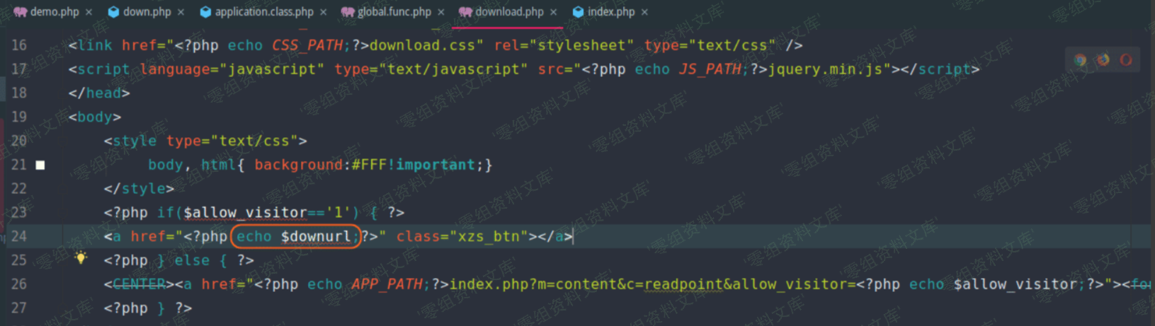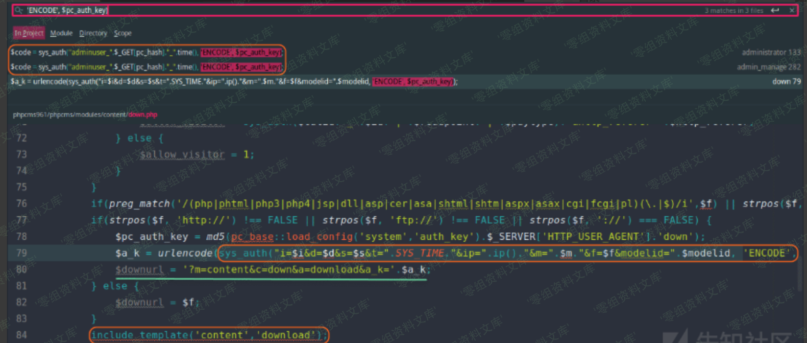作为明文字符串被加密。(下图对应文件位置:phpcms/modules/content/down.php)