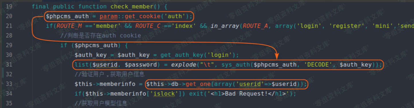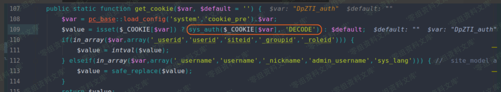字段经过 **sys\_auth** 函数解密后,返回给了 **\$phpcms\_auth**