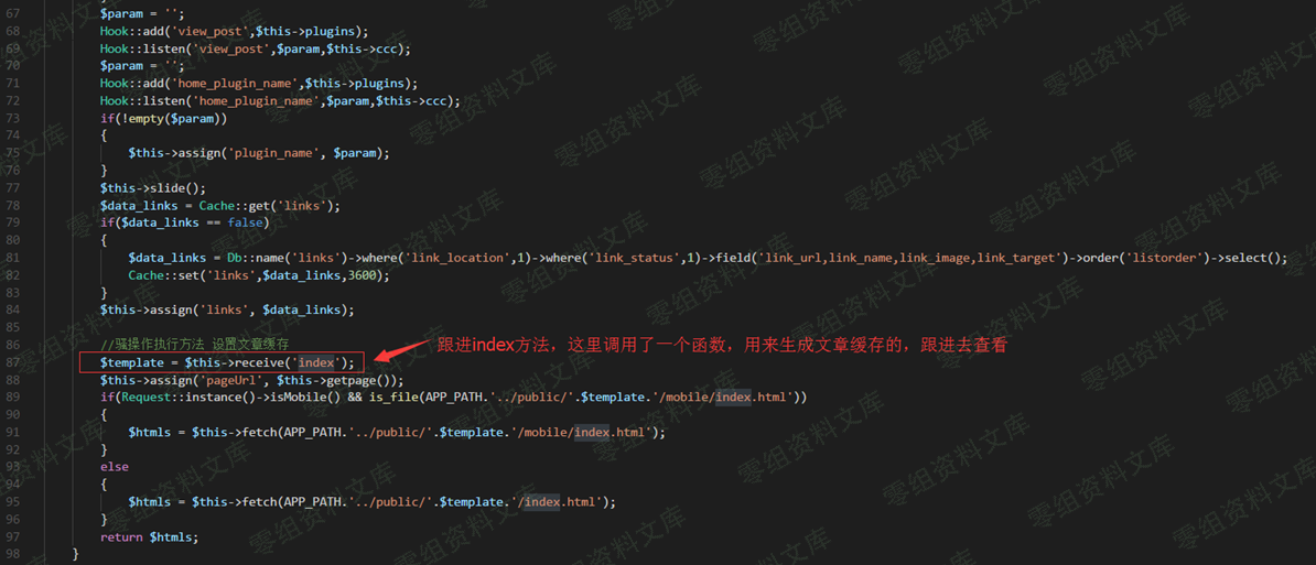 首先是从index目录里面的index模块下面的index方法调用了一个方法\$template= \$this-\>receive(\’index\’); = index