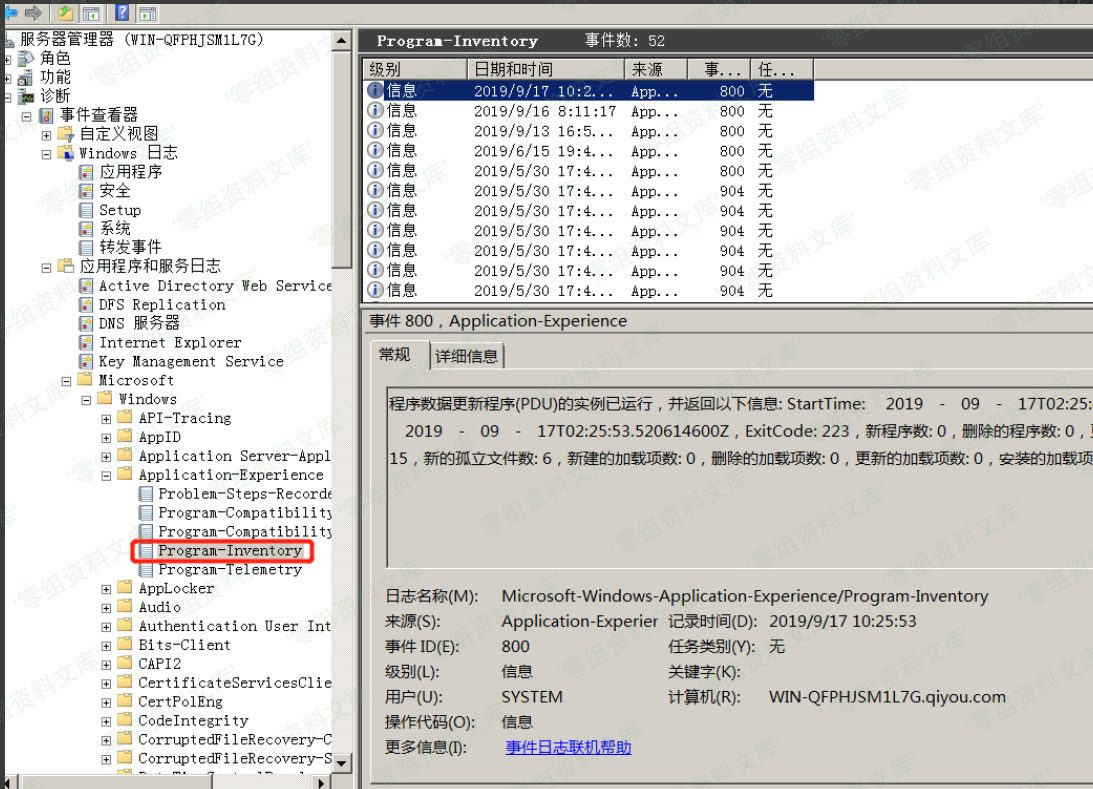 在Windows事件查看器的位置:`Applications and Services Logs\Microsoft\Application-Experience\Program-Inventory`,如图