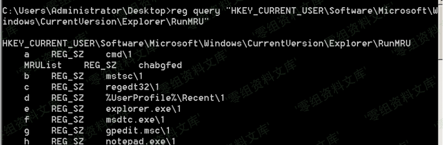 reg query “HKEY_CURRENT_USER\Software\Microsoft\Windows\CurrentVersion\Explorer\RunMRU”