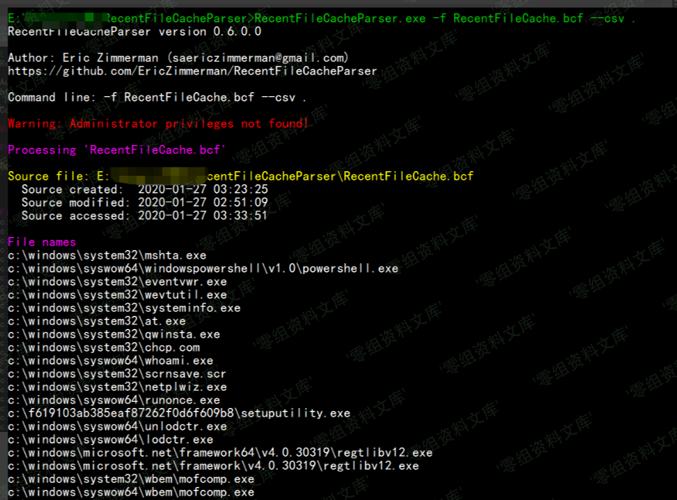 RecentFileCacheParser.exe -f “C:\Windows\AppCompat\Programs\RecentFileCache.bcf” –csv “c:\temp”