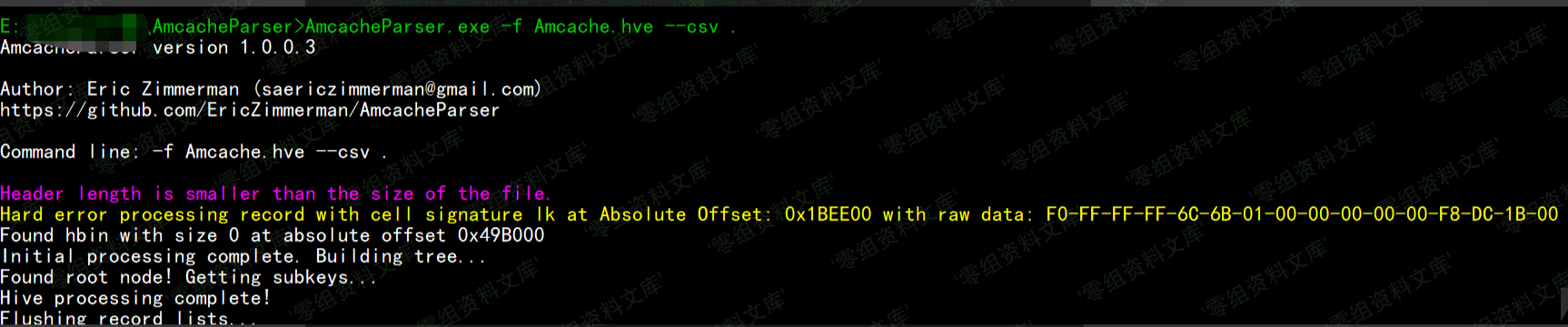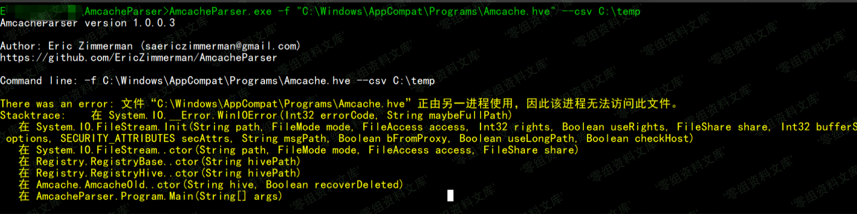 解决方法是把`Amcache.hve`复制到其它目录,我们可以使用`shadow copy`把`Amcache.hve`复制到当前目录,然后再执行就可以了