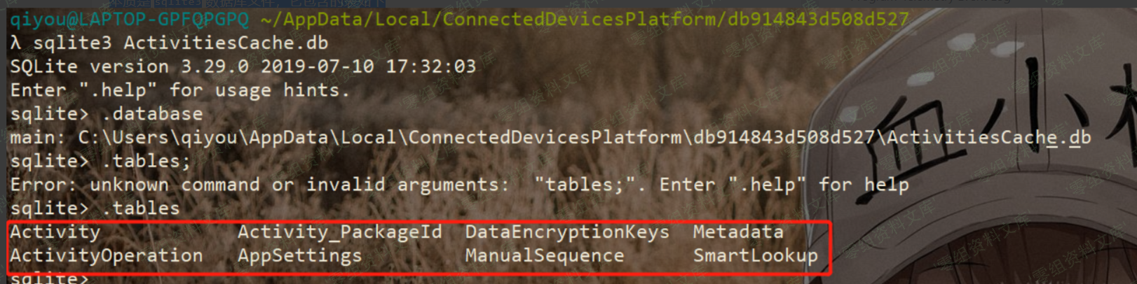 `ActivitiesCache.db`位置在