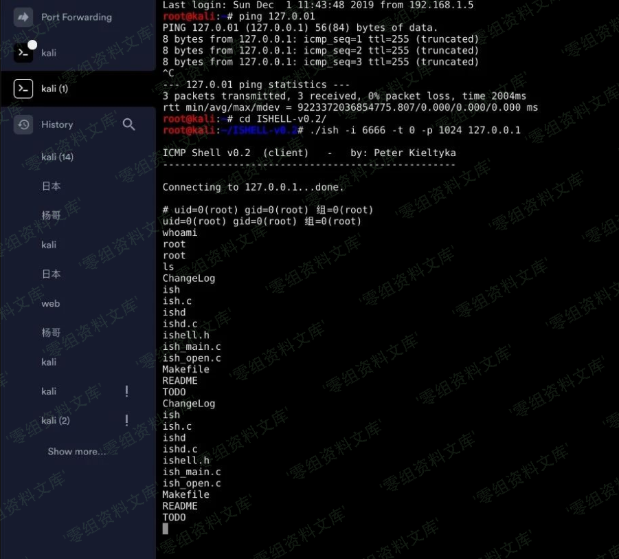 使用ICMP来作为隐蔽通道的原理是:有一个服务端和一个客户端,当它们通信时会用到 ICMPECHO 和 ICMPECHOREPLY的数据部分。这就意味着通过ICMP包的数据部分可以发送和接收数据。