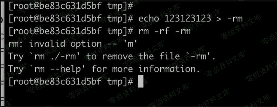 使用echo等工具新建一个文件名是-rm的文件,这样删除的时候bash会认为-rmt是rm的参数。