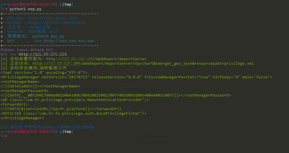 print('+ \033[36m使用格式: python3 poc.py \033[0m')