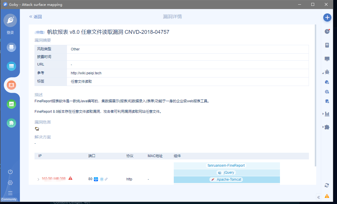 FineReport v8.0版本存在任意文件读取漏洞,攻击者可利用漏洞读取网站任意文件。