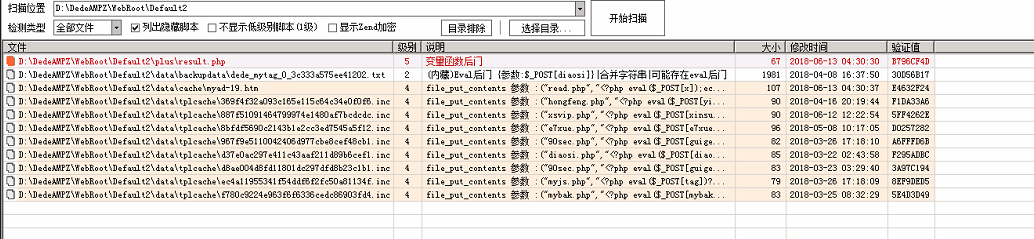 在针对网站根目录进行webshell扫描,发现存在脚本木马,创建时间为2018-06-13 04:30:30