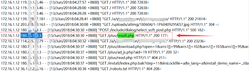 通过木马创建时间, 查看网站访问日志,定位到IP为:180.xx.xx.3