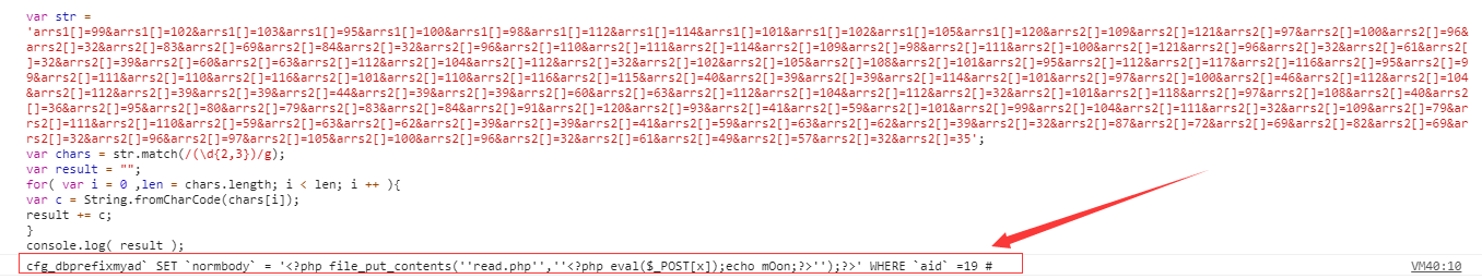 对这段POC进行解码,我们发现通过这个poc可以往数据库中插入数据,进一步访问/plus/ad_js.php?aid=19 即可在plus目录生成read.php脚本文件。
