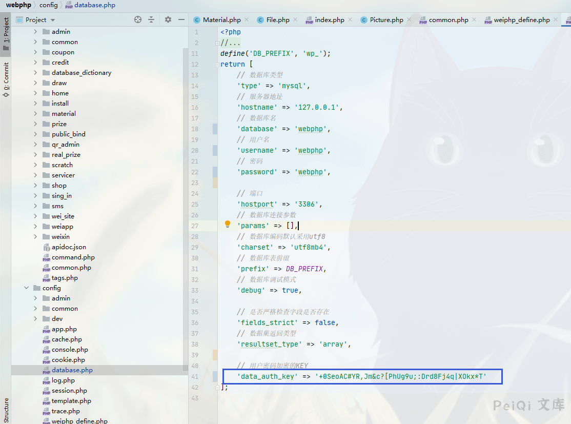 得到这个配置文件可参照上一篇**Weiphp5.0 前台文件任意读取**