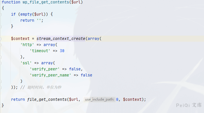 分析传入变量 **picUrl** 的 **wp_file_get_contents**方法
