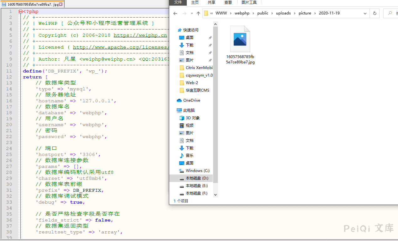 我们先尝试控制变量 **$picUrl** 来写入数据库配置文件到图片中