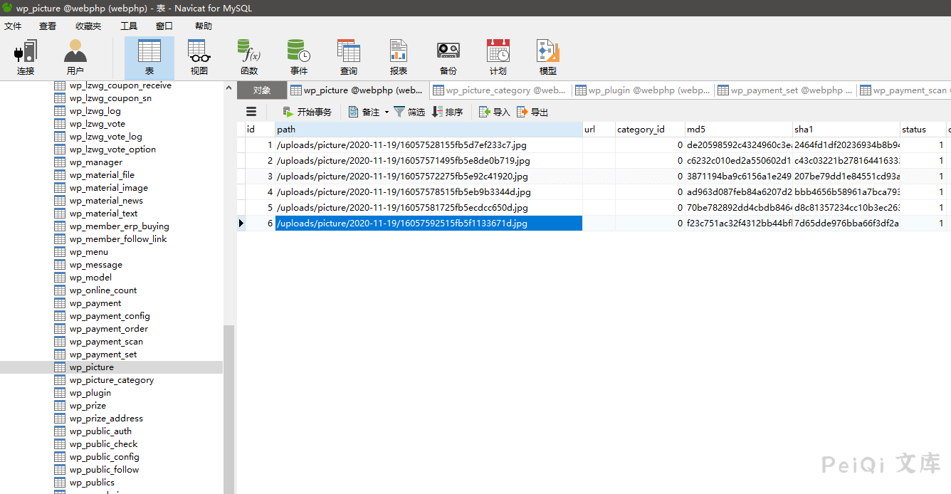 定义值默认为 1,所以这里调用则可以获得数据库中Pictrue表的内容,间接的知道了文件内容以及文件名