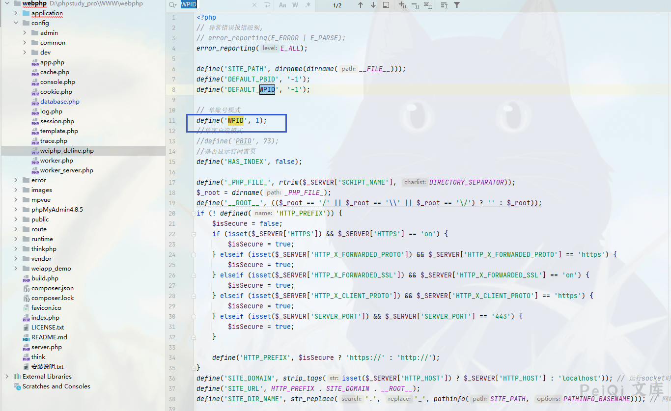 查看 WPID 的定义,文件位置在**config\weiphp_define.php**
