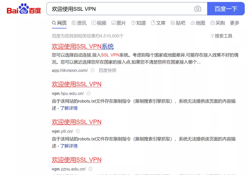百度”intitle: 欢迎使用SSL VPN”,随便找一个地方下载VPN客户端下载安装: