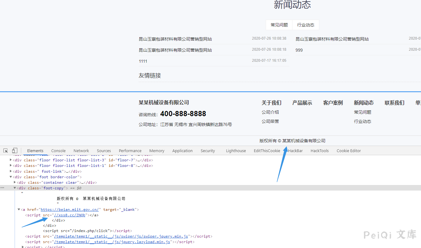 漏洞出现在登录后台的网站编辑的位置,由于没有对输出的字符进行过滤,导致XSS