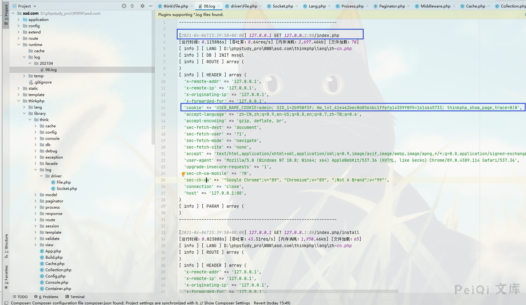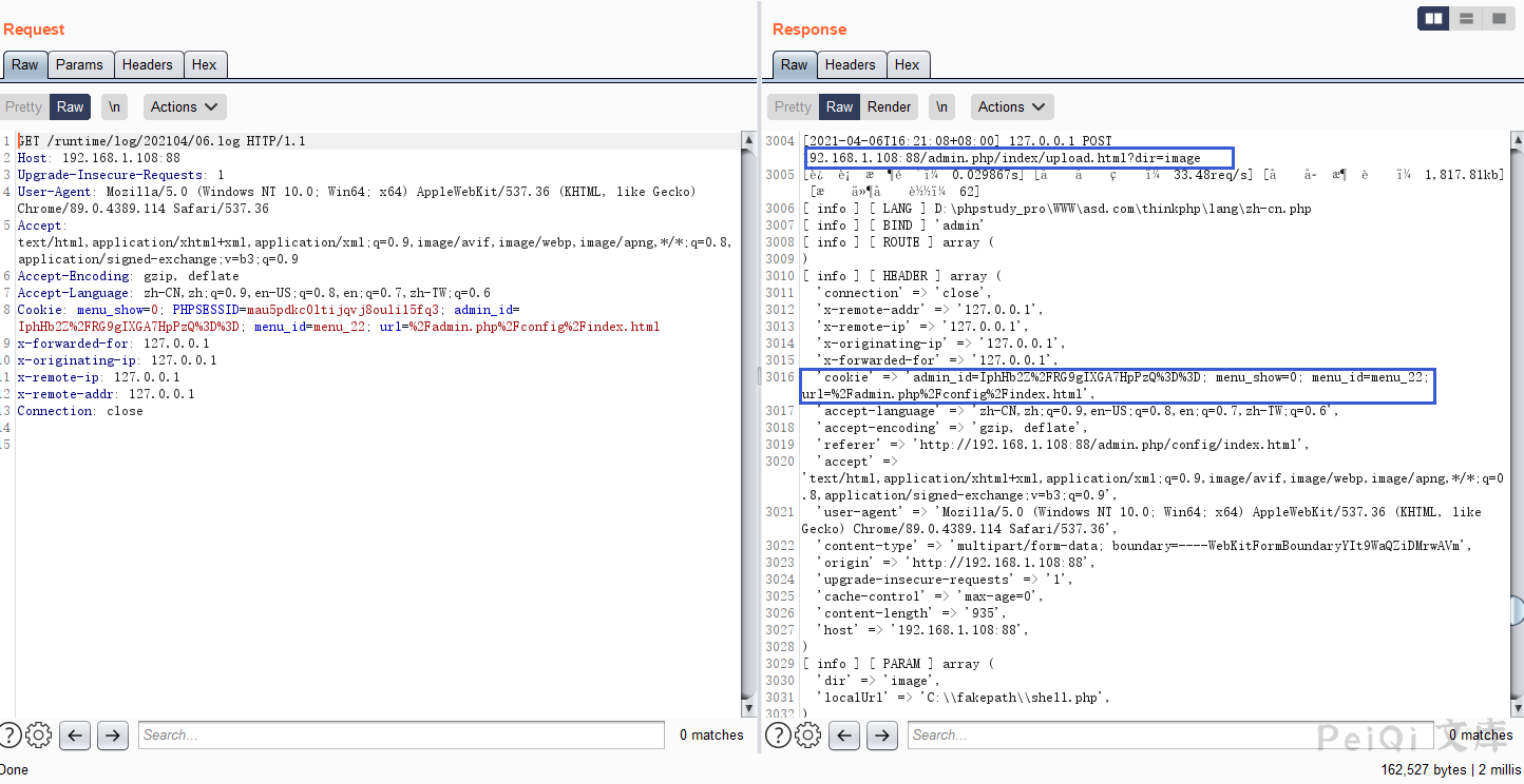 这里关注后台的日志文件中的 admin.php页面的cookie就可以获得管理员权限