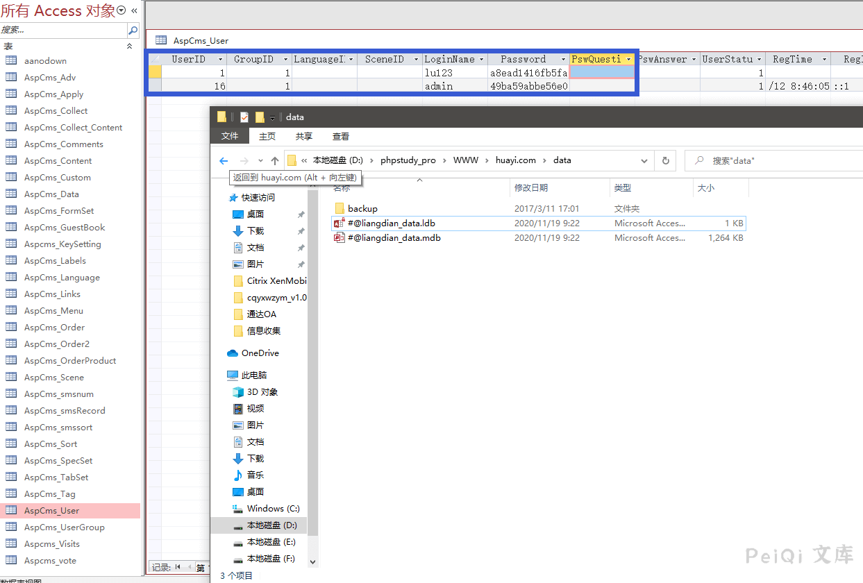 在目录下的DATA目录中有**mdb文件**, 打开后可以发现存在默认的两个用户